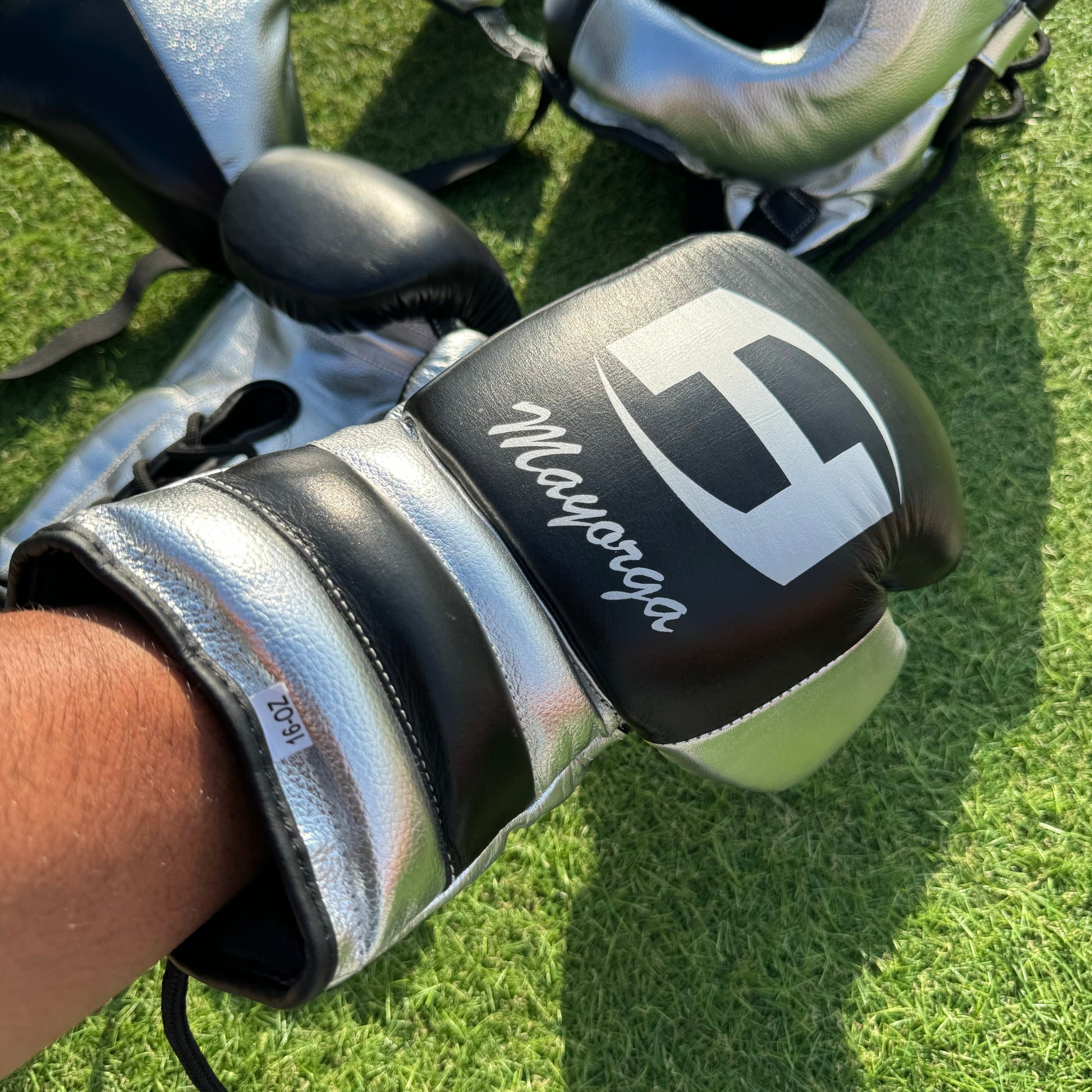 BLACK & METALLIC SILVER | BOXING GLOVES & SPARRING SET | 100% LEATHER