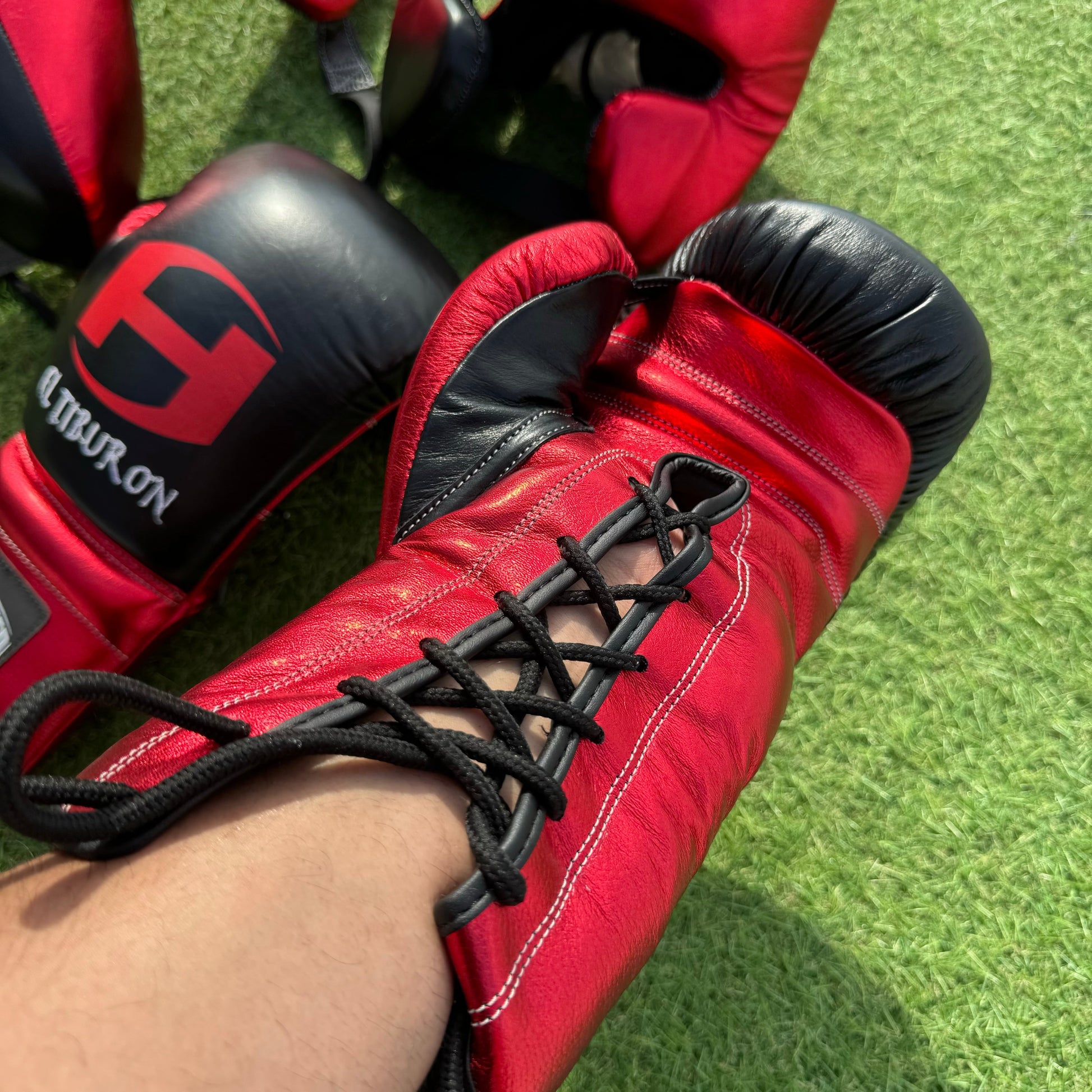METALLIC RED & BLACK | BOXING GLOVES & SPARRING SET 100% LEATHER