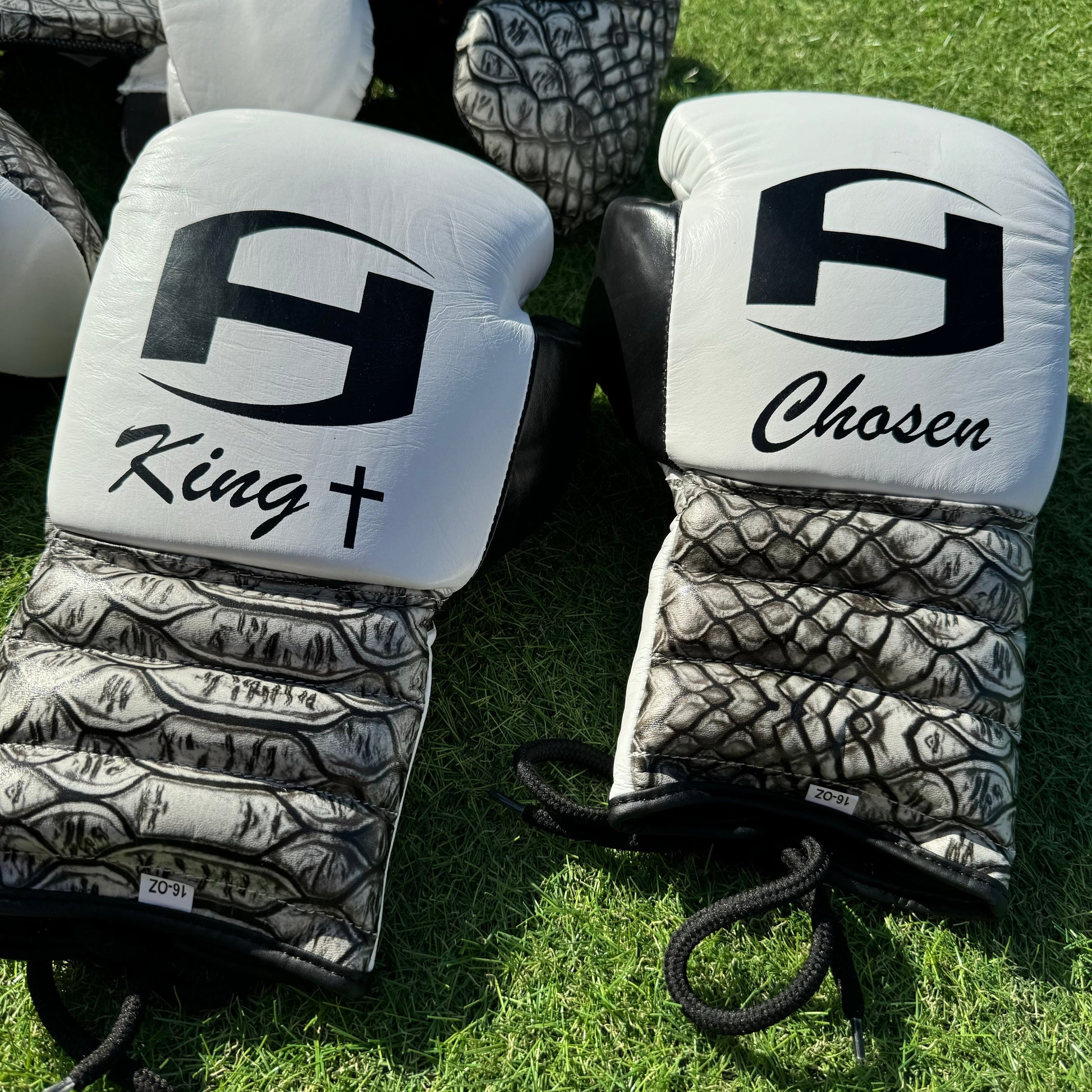 WHITE W/ CROCK PRINT | SPARRING SET | 100% LEATHER